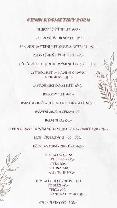 Úvod > Aktuality > Ceník kosmetiky 2024