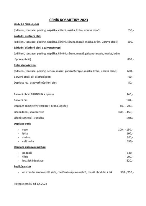 Úvod > Aktuality > Nový ceník kosmetických služeb od 1.4. 2023